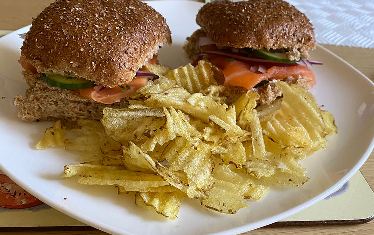 Arrange on serving plates with some crisps on the side